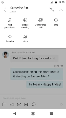 • One-tap escalation to WebEx meetings (cross-launches the Cisco WebEx® Meetings application)