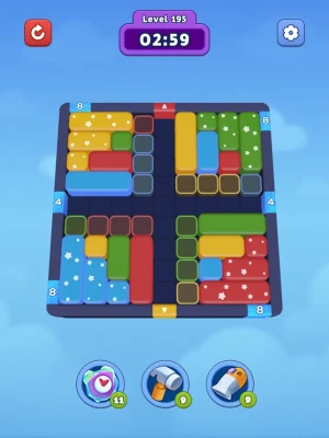 -Slide the blocks to clear paths and match colors in this captivating block puzzle game.