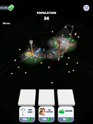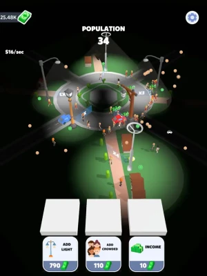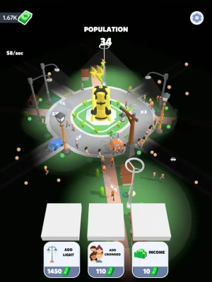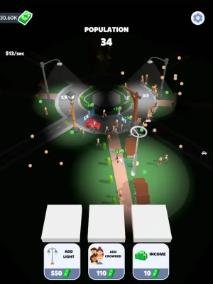 Bring light to the darkness with this new mobile game! In this unique game, you'll take on the role of the city's savior by buying and placing street lights throughout the city. As people pass by your lit streets, you'll earn money to continue brightening up the city. With challenging levels and a fun and engaging gameplay, this game is sure to keep you entertained for hours. Download now and start lighting up the city today!