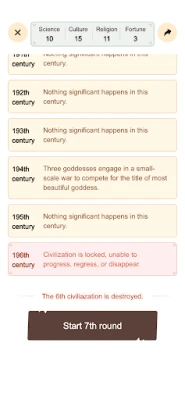 Control a journey of civilization in less than a minute! This game offers unlimited combinations of storylines with five distinct styles. From mythology to cyberpunk, you can indulge yourself anytime with a thrilling and satisfying experience!