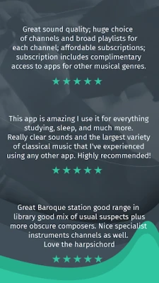 - Listen to 50+ hand-curated classical music channels