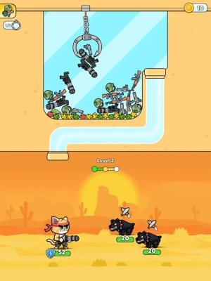 - Master the Claw Machine: Perfect your item-catching skills to enhance Army Cat's abilities and take down enemies. - Evolving Challenges: Face increasingly tough enemies and bosses as you advance through the game. - Unlock Unique Skills & Items: Discover and collect special items that give Army Cat an edge in battles.