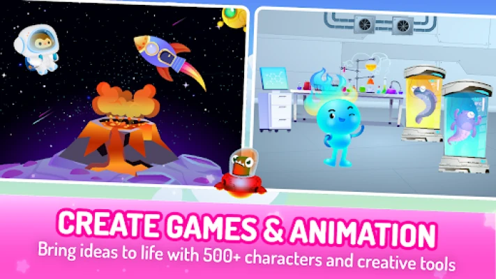 ■ Create freestyle animations and games with code blocks in the Sandbox area.
