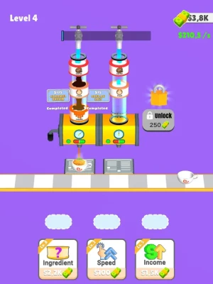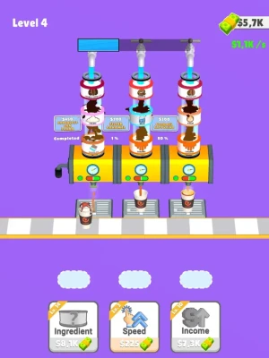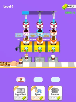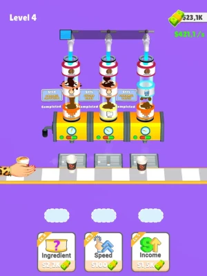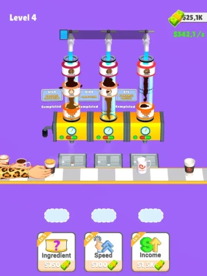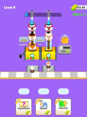 Add ingredient to get coffee,milk or sugar,Sort them to get a coffee, Sell and get new ingredients to have unique coffee recipes!