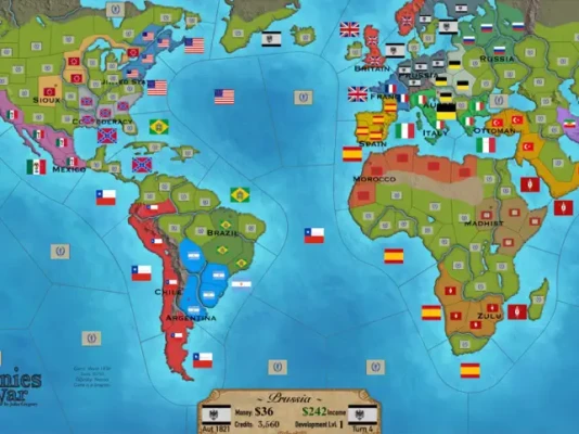Colonies at War is a game set in the 19th century during the rush by colonial powers to colonize the known world. It's a game of building armies and crushing enemies. Pick one of the 28 nations available, look for the best lands nearby, then send in your armies to conquer them. Make allies of your friends, and war on your enemies. Build your navies to control the seas and become the greatest nation in history.