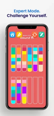 Pass time with this simple logic game. Tap the tubes to select the top-most ball. Stack matching balls until every tube has matching colored balls. Includes various modes!