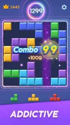 Dive into a fun world of color blast excitement where you can play casual block games for free. Keep an eye on the next blocks coming up. If you plan ahead, you can clear lots of lines at once and get bonus points! It's like a tetris block puzzle party. Combo Block blast no ads means you can focus on solving puzzles without any distractions.