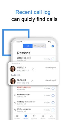 Personalizing your phone dialing experience is effortless with iCallApp. Enjoy streamlined calling functionalities like a quick contact search, easy management of recent calls, and a favorites section for quick access to your most important contacts. π