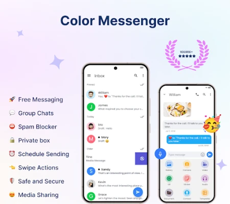 Message anyone from anywhere. This feature-rich messaging app is a great replacement for your stock SMS messenger. With secure, end-to-end encrypted messaging and instant chat features, Color Messenger offers an all-in-one solution to elevate your SMS & MMS messaging experience.