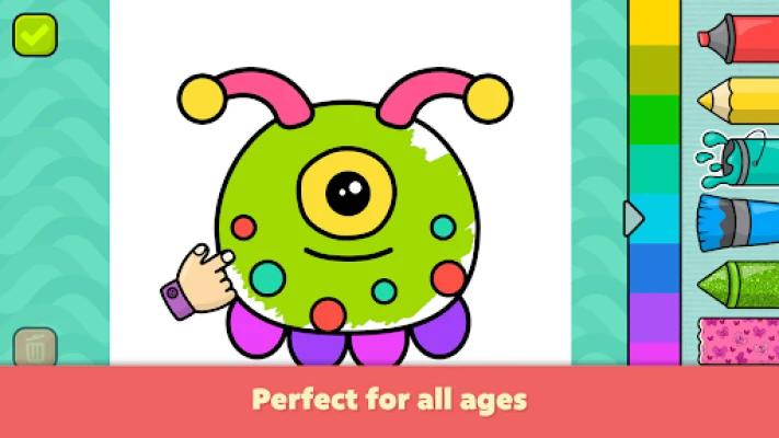 Coloring book for kindergarten kids and toddlers. The app has 165 pictures for coloring that will keep your child entertained while developing creativity, fine motor skills and hand eye coordination. Our coloring game is great for both girls and boys of all ages and interests. It allows kids to color animals, dinosaurs, princesses, transport, aliens, sea creatures, robots and even Christmas pictures.