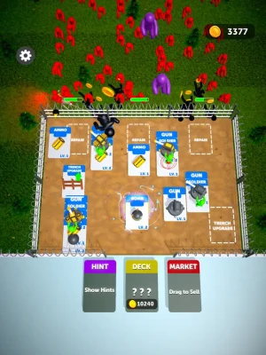 Open packs. Merge and combine cards to upgrade your army. Use your repair and upgrade trench cards to strengthen your defenses. Kill your enemies to earn money. Evolve your army.