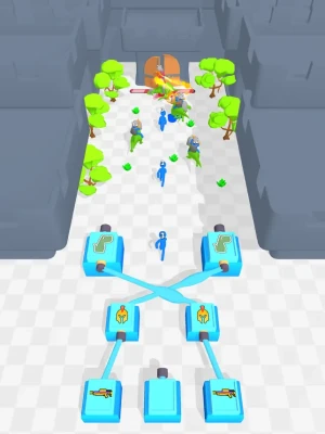 Improve your soldiers with feature machines!Connect the machines each other to create more powerful soldiers!Find the best connecting path!
