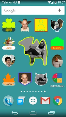 Choose from multiple shapes for displaying your contacts. 6 different layouts, all resizable.Easy configuration. Add single contacts, add your favorites or any other group you already had setup. You can order the contacts as you please.You can edit the widgets after setup too. Add a colorful frame to your pictures. Choose direct dial or message, or show the quick menu.