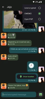 A free and open source Jabber/XMPP client for Android. Easy to use, reliable, battery friendly. With built-in support for images, group chats and e2e encryption.