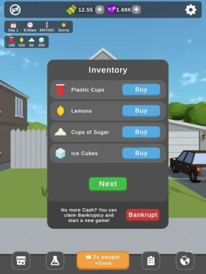Buy cups, lemons, sugar, and ice, then decide your recipe based on the weather and how much cash you want to charge customers. Start with the given basic recipe, then try to change the recipe and see if you can make the recipe better to make more cash. Try to change your lemonade sale price based on the weather conditions. If you get good reviews and have happy customers even more people will shop up to your stand. If you make enough cash you can upgrade your stands location to the Park or the City to sell Lemonade for up to 4x more cash! At the end of the game, you'll see how much money you made.