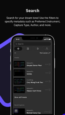 Access Cortex Cloud through an intuitive and elegant interface. Browse users, Presets, Neural Captures, and more. Star items to have them display instantly on your Quad Cortex. You can also manage your profile, as well as change the privacy settings for any of the files you have uploaded to Cortex Cloud.