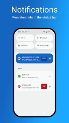 With help of this CPU/GPU Meter & Notification you can have all this data as permanent notification and you can access it in a single swipe.