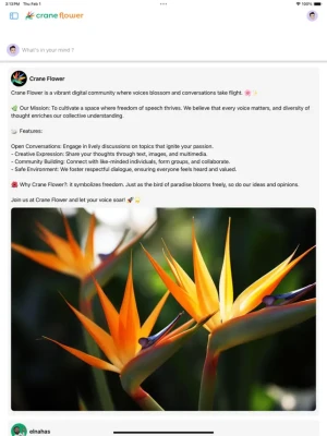Why “Crane Flower”?: The name symbolizes elegance, resilience, and the beauty of free expression. Just as the bird of paradise blooms freely, so do our ideas and opinions.