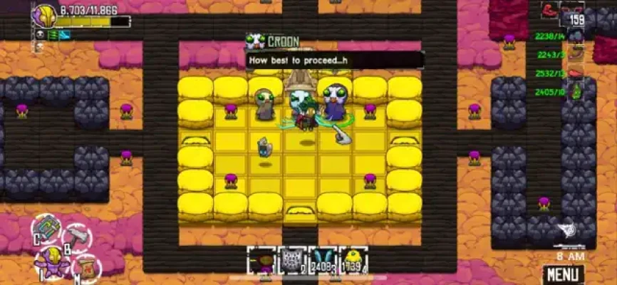 Every creature in Crashlands can become a trusty combat sidekick. Find an egg, incubate it, and hatch your very own adorable or hideous bundle of joy. You can even craft special items to grow and empower them!