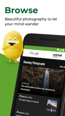 Try swiping to the screen to the LEFT of your home screen, and check out the "Cricket Partner Tab" where you can find a selection of beautiful photography, the latest headlines and fun videos collected just for your short mental breaks. No need to spend your break surfing through a sea of icons for half of the short time you have – just swipe to the left screen, tap on the Cricket partner tab and enjoy! It's easy, convenient and fun. All the things you love in one view: swipe into the “Cricket Partner Tab” today!