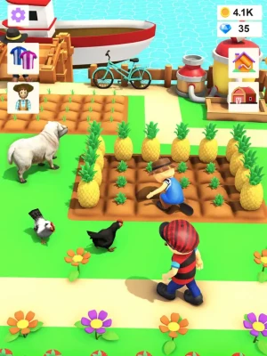Your quest is simple...seed the fields, harvest them, raise your animal farm, and expand your island to become one of the best farmer boys in one of the best idle farming games