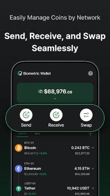 - Cryptocurrency Transactions: Easily send and receive cryptocurrencies, and securely swap over 3,000 coins and tokens quickly and safely.
