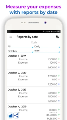 Daily Expenses is an application designed to organize your income and expenses, your movements of money are recorded by date, you can review the reports daily, weekly, monthly or yearly.
