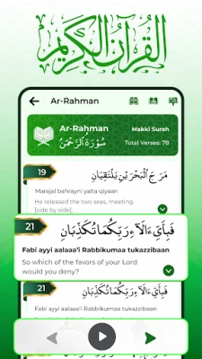 The Quran Translation feature makes it easy for users to read the Quran Majeed daily with translations in English, Urdu, Hindi, Bengali, and many other languages. This side-by-side translation helps users understand the meaning of the Daily Quran, especially those who are not fluent in Arabic.