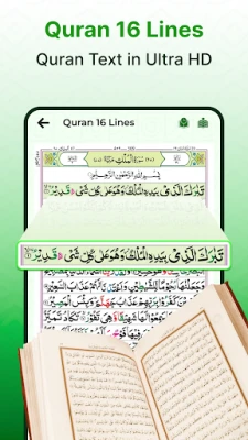 Enjoy a high-quality display of the Quran Sharif in a clear and readable 16-line script, designed for accurate recitation and effortless reading