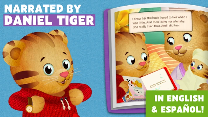 The Daniel Tiger’s Storybooks app is a library of interactive stories narrated by Daniel Tiger. The stories show Daniel learning little life lessons, like sharing with friends and being a helper. Each book includes a familiar song, charming animations, and a simple game to encourage children to play about the theme of the story. All books are available in English and Spanish.