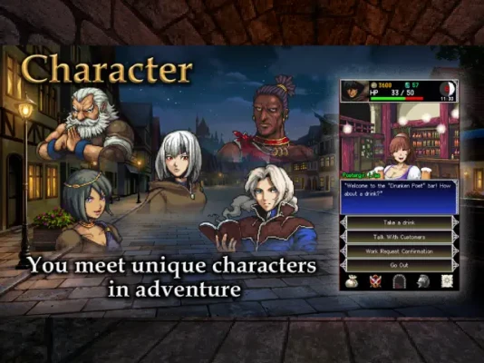 This time, the adventure begins in a certain town. Visiting the bar, you can meet various people, so remember to gather information while having a conversation. Depending on the conversation options, it can be friendly or hostile.