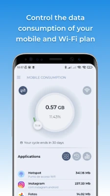 You can also check your consumption evolution in the data history to see how you have been improving and apart from being informed about mobile data consumption, you can also check your Wi-Fi consumption!