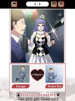 DATING! Horror Beauties!' is a quiz game in which you have to choose between 2 choices to make the horrifying beauties (yokai, monsters and ghosts) happy!