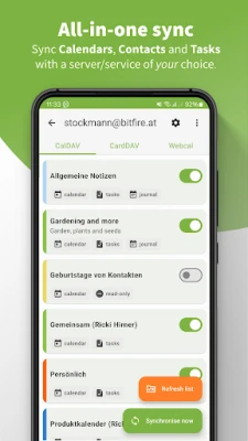 ⊛ Sync your Calendars (CalDAV) and address-books (CardDAV) and Tasks (VTODO via CalDAV) in a single app