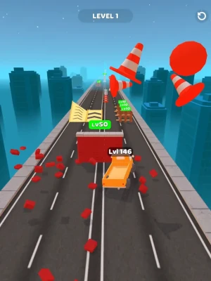 - Demolish objects and level up your car. - Reach high levels to demolish the grand statues at the end.