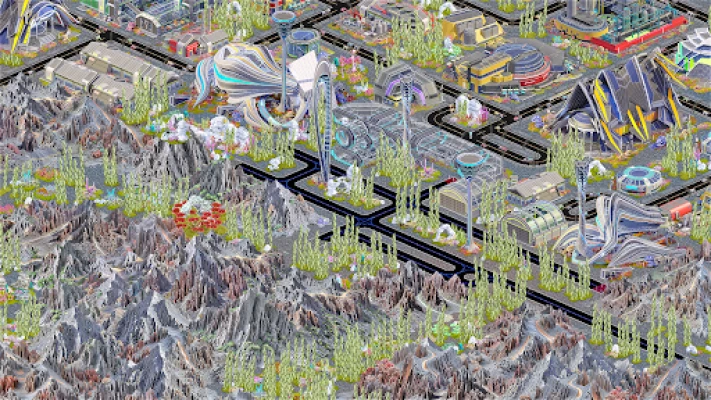 Place skyscrapers, roads, parks, and coral structures with full creative freedom