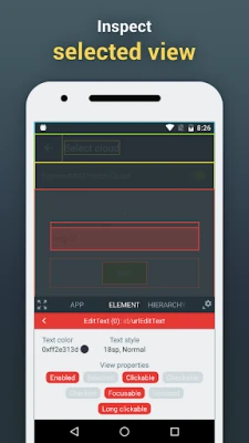 Testers writing automation tests and developers chasing bugs can inspect hierarchy of elements displayed on the screen, directly from the mobile device. The concept is similar to the inspection of web pages with well-known dev tools shipped with the leading web browsers.