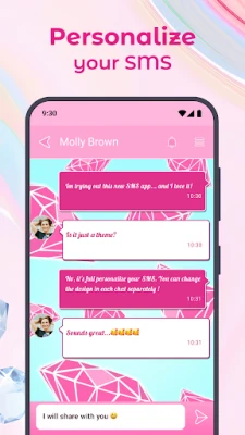 This diamond SMS app is not just about looks; itβs about functionality too! Enjoy features like delayed message sending, delivery reports, and conversation customization. Make your texting experience luxurious and worry-free with the Diamond SMS Texting App.