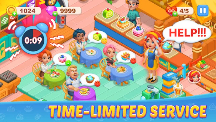 Prepare exquisite meals to satisfy customers with diverse tastes. Earn revenue to purchase and upgrade kitchen equipment, hire top chefs and servers, enhance your restaurant’s environment, expand its scale, and eventually create your dream dining establishment!
