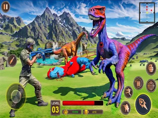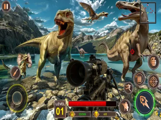 "Dino hunting simulator-Rampage" is an action-packed game armed with a wide variety of weapons and equipment, embark on daring expeditions to hunt down and take down ferocious dinosaurs. The game features realistic graphics, variety of ferocious dinosaurs and a range of challenging missions that require strategy, precision, and quick reflexes. As players progress, they can unlock and upgrade their arsenal, allowing them to face increasingly formidable dinosaur species. Whether tracking a massive T-Rex through dense jungles or engaging in intense firefights with agile raptors, "Dino hunting simulator-Rampage" delivers a thrilling adventure for fans of both hunting and dinosaurs.