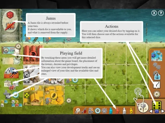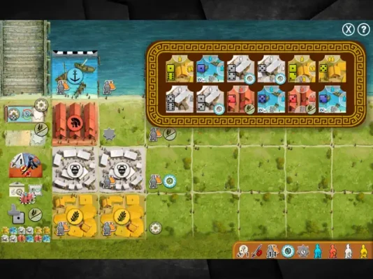 In 'Discordia', you develop your city by building farms, barracks, defenses, harbors, and markets, and by trading with ships. Use your seamen, soldiers, merchants, and farmers profitably, fulfill decrees, and secure privileges — acting carefully at all times so that your city grows neither too fast nor too slow. Will you have the best-developed city at the end of the fourth year and score many points, or will you manage to impress the empress before then and win the game early?