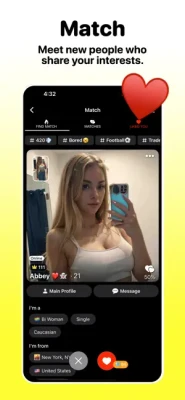 • Match — Get compatibility scores based on shared interests.