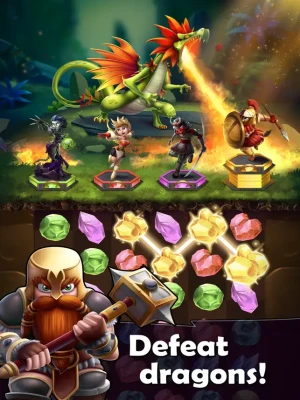 A team can only be as good as its battle plan. Your challenge is to find the best match of diamonds to defeat the dragons and the minion beasts who serve them - choose the right hunters for your quest, equip them with powerful items and face the vicious dragons on the battlefield.