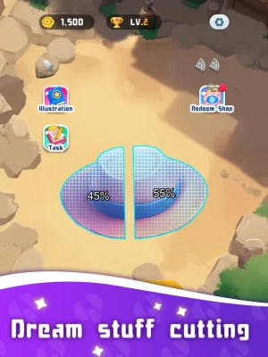 Welcome to Dream Stuff Cutting ! Swipe your finger across the screen to draw straight lines and slice the image into evenly sized pieces. Make the perfect cut to complete each level. As you enjoy the satisfying art of slicing, challenge your logic and precision skills—and gradually build your own gallery of creative masterpieces!