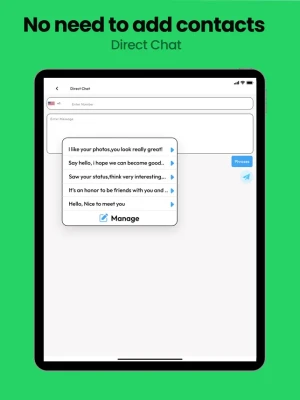 ■ Direct Chat: You can enter a simple message and open WhatsWA to start a chat directly.
