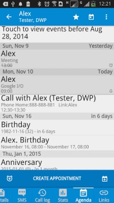 + Show all information in the contact detail. Including: SMS, call history, call statistics, related events and tasks. You can also connect custom data to contacts