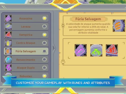 • Customize your gameplay with runes and items! Find runes around the cave that will give your hero extra features. Assemble your build with up to three runes, forge items and set up your character in your preferred style. Choose your strategy and customize your gameplay!