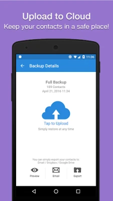 ✔️ Easy Backup allows you to backup your phone’s entire contacts list with a single tap, by uploading your contacts to a secured cloud to keep them safe!