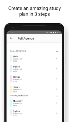 With Easy Study you will create an incredible study plan in only 3 steps. Just enter the subjects that you will study, how many subjects you want to study each day of the week and confirm if the plan fits you. Our app will create a plan with the subject you should study each day, all to optimize your study time.