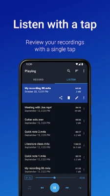 Easy Voice Recorder is your everyday companion to record important moments. Capture meetings, personal notes, classes, songs, and much more, without time limits!